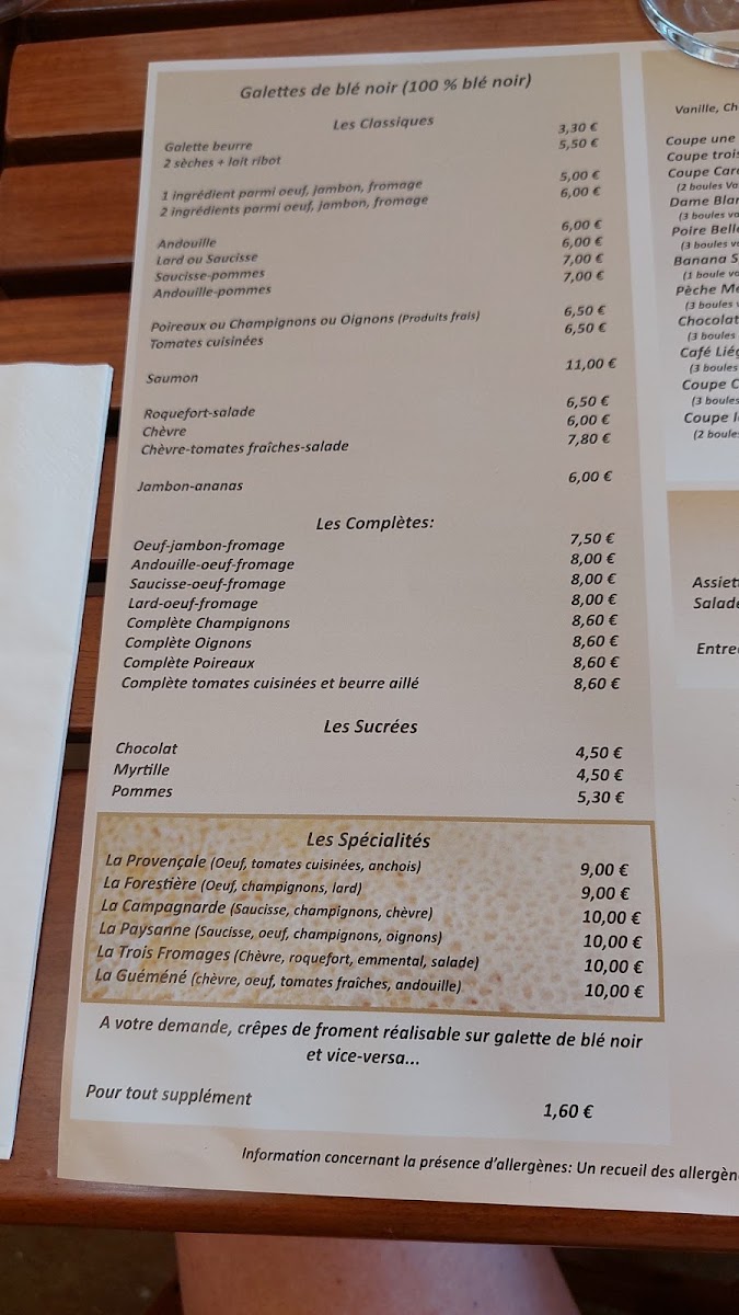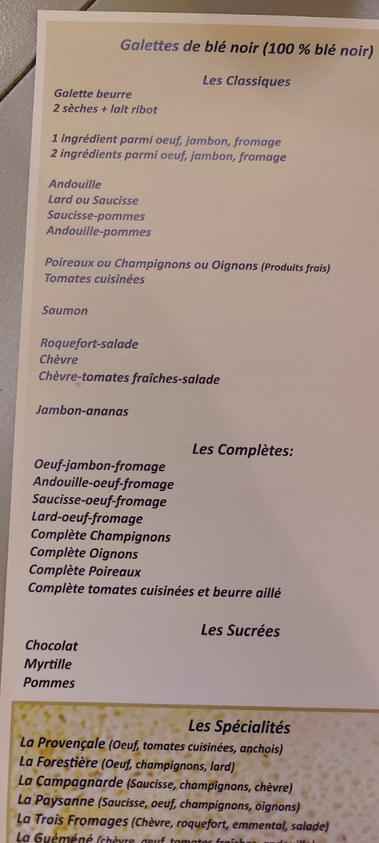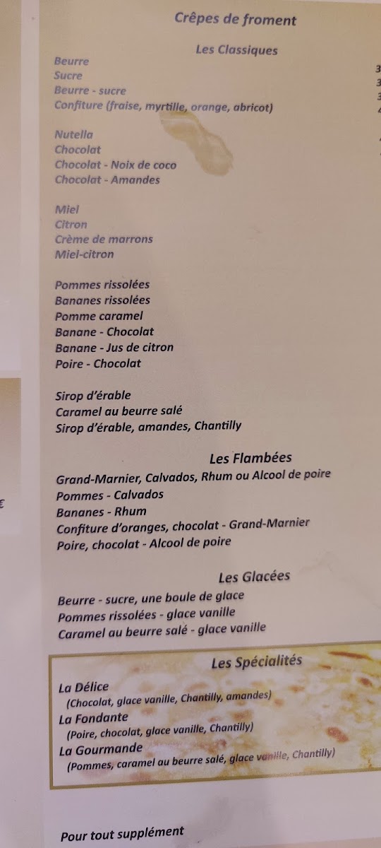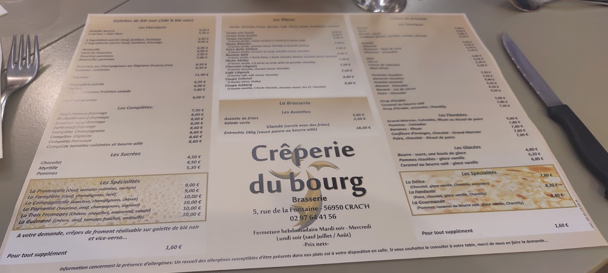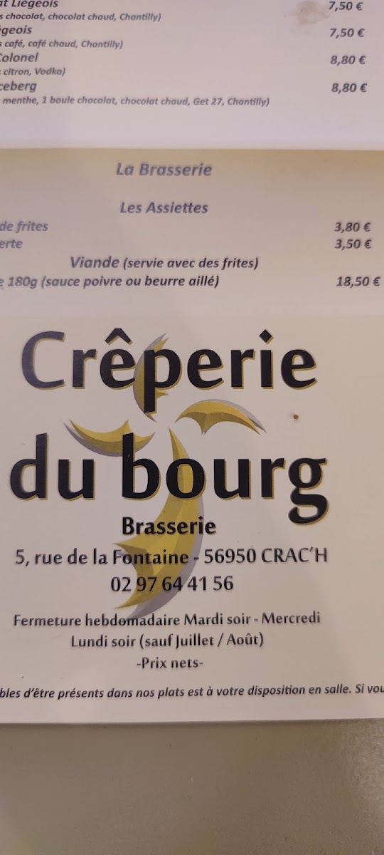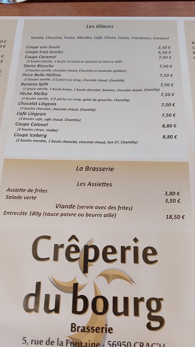 The menu at Crêperie Du Bourg offers a delightful selection of both savory and sweet options, capturing the essence of traditional French crêpes with a twist. For a hearty and satisfying option, the Pizza is a great choice, featuring a delicious combination of flavors. The Crêpe Saucisse stands out as a savory favorite, with its perfect balance of crêpe and sausage. For dessert lovers, the Coupe Iceberg is a refreshing and indulgent treat, combining ice cream with a crisp finish. The Crêpe la Gourmande delivers a rich, sweet experience, ideal for anyone craving a decadent crêpe. And for those seeking a taste of Brittany, the Crêpe Bretonne la Vraie A L'andouille de Guéméné is a must-try, offering an authentic and flavorful experience with its distinct regional sausage. This menu showcases the best of French crêperie fare, catering to both savory and sweet preferences, and is perfect for anyone looking to savor traditional flavors with a touch of modern flair.